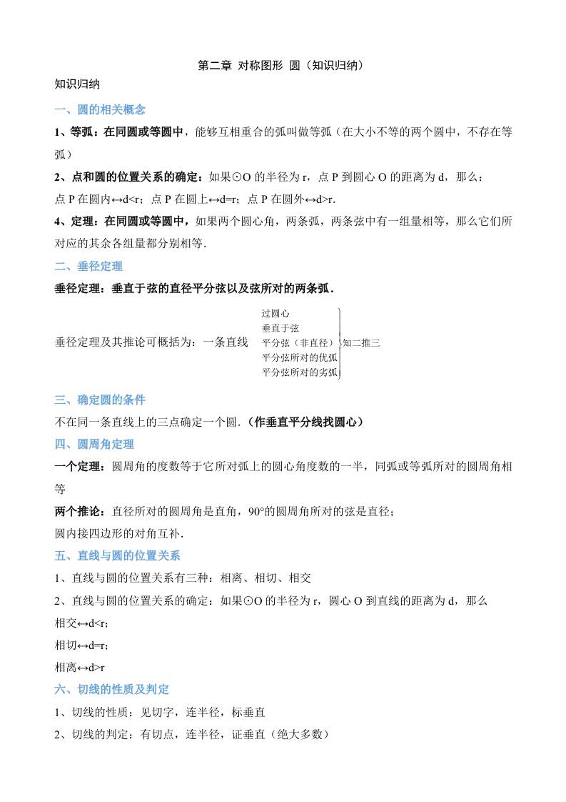 第二章 对称图形—圆(9个知识归纳)