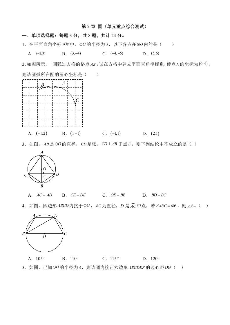 第二章 对称图形—圆(单元重点综合测试)
