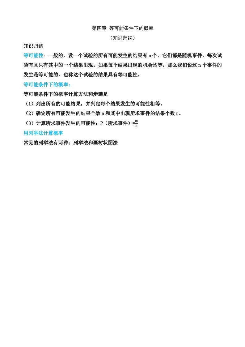 第四章 等可能条件下的概率(3个知识归纳)