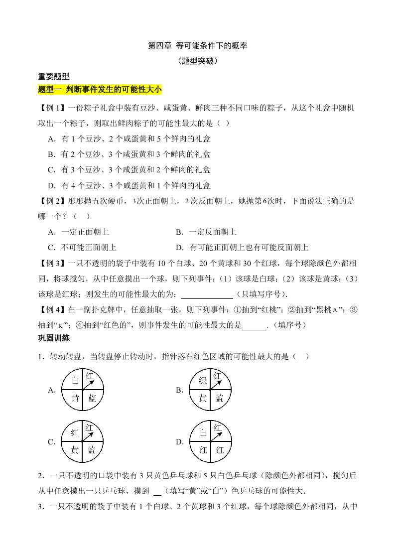 第四章 等可能条件下的概率(5类题型突破)
