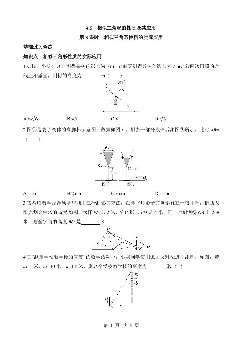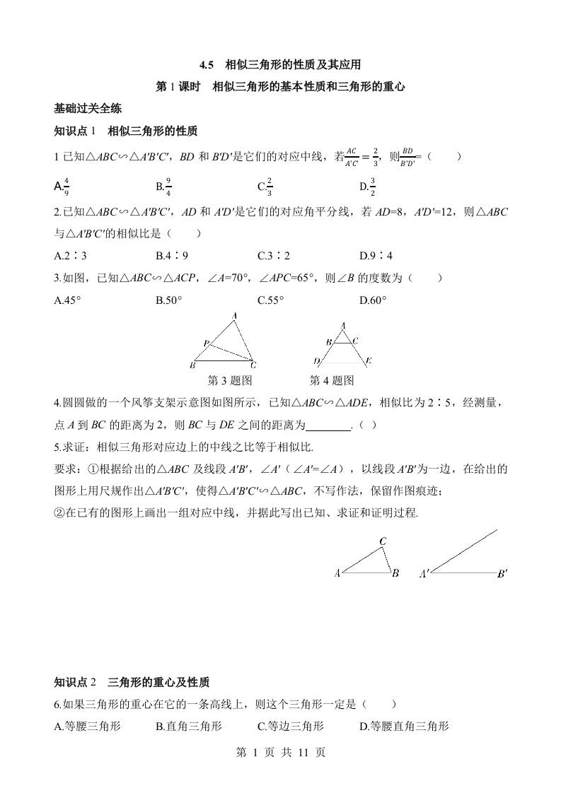 4.5.1 相似三角形的基本性质和三角形的重心 同步练习