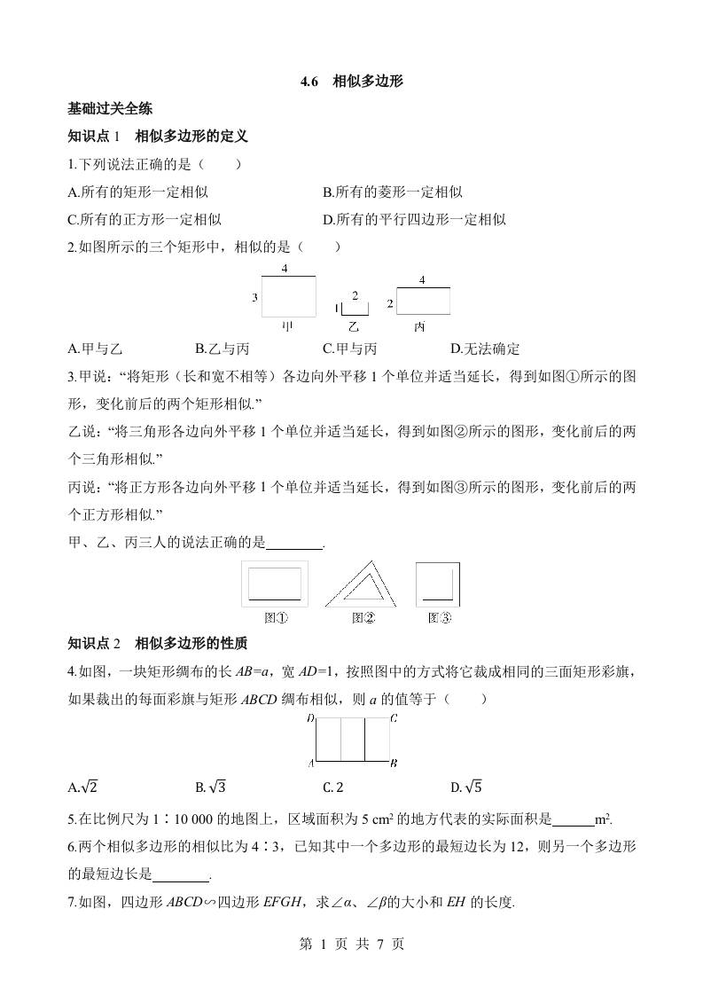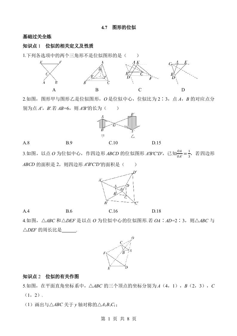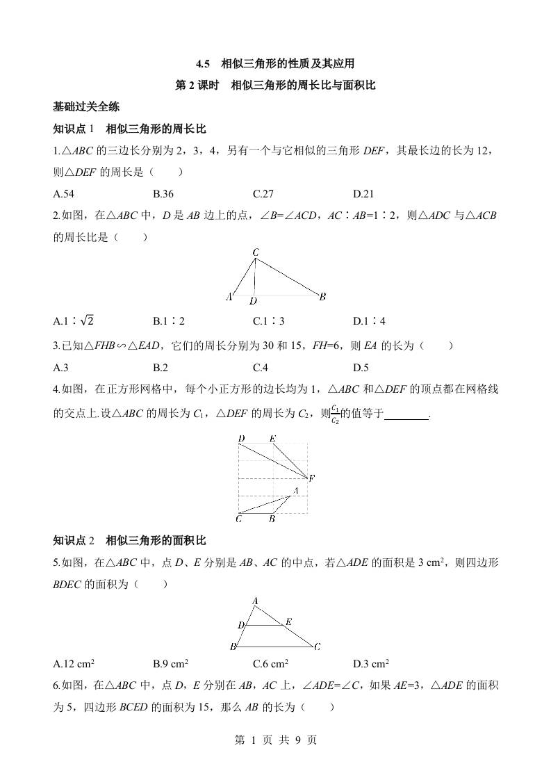 4.5.2 相似三角形的周长比与面积比 同步练习