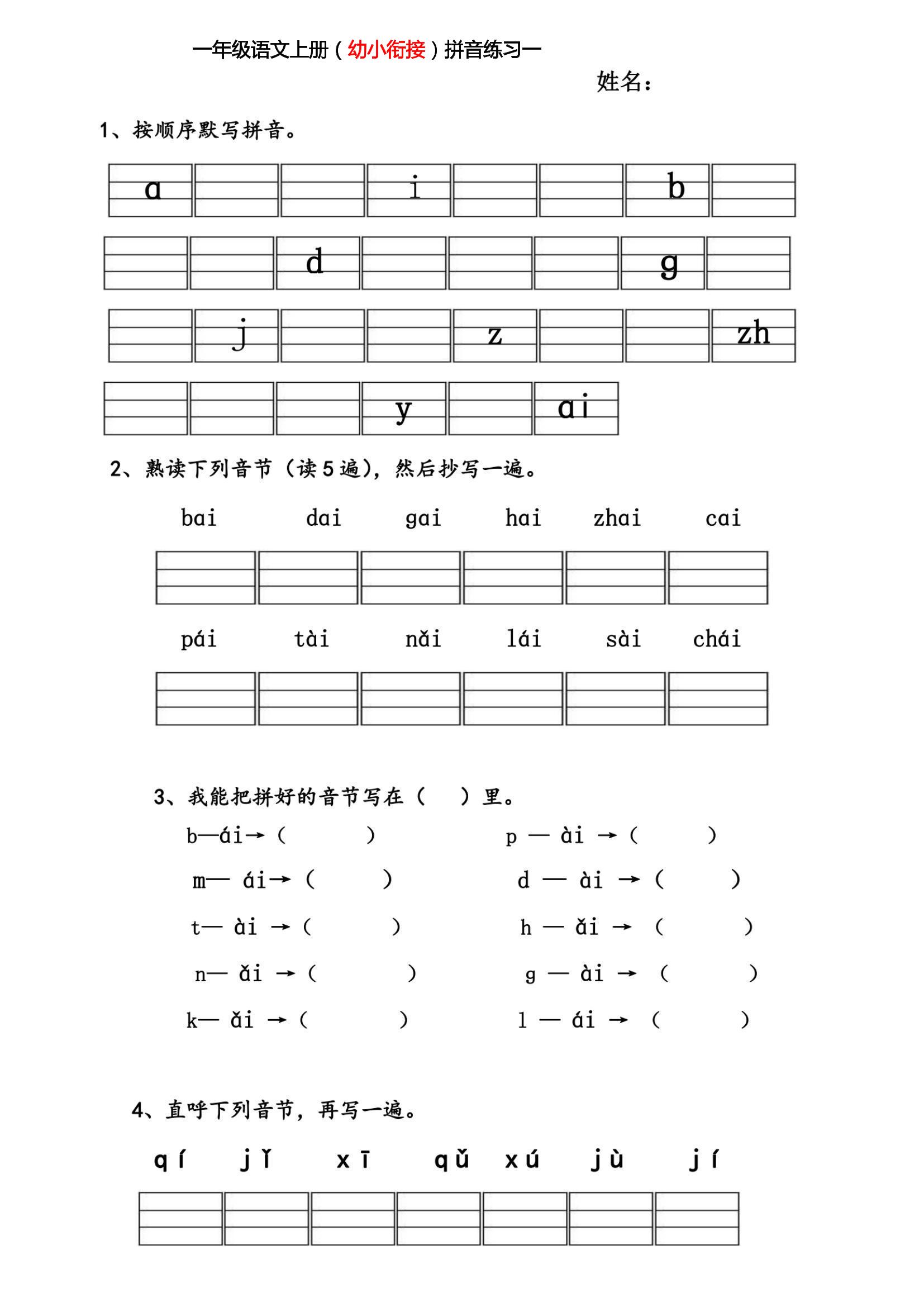 幼小衔接!语文九月份升一年级必练汉语拼音-声母