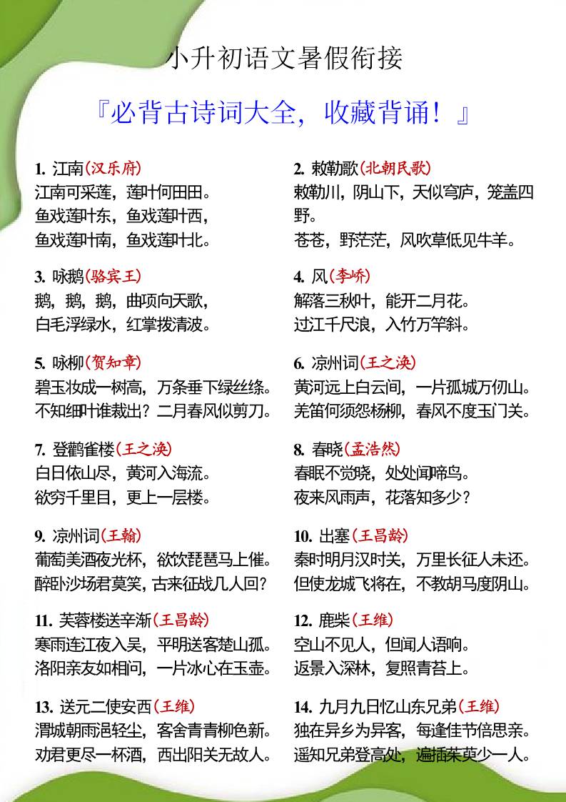 小升初语文必背古诗62首,暑假背诵!-小升初语文