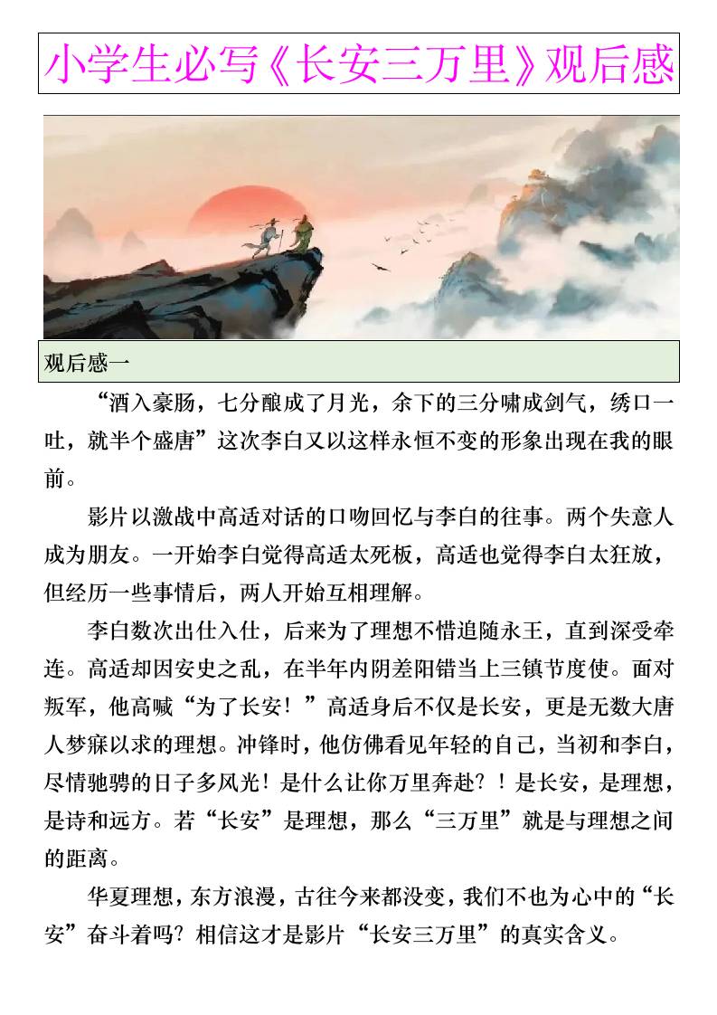 小学生暑假优秀作文:《长安三万里》观后感-小升初语文